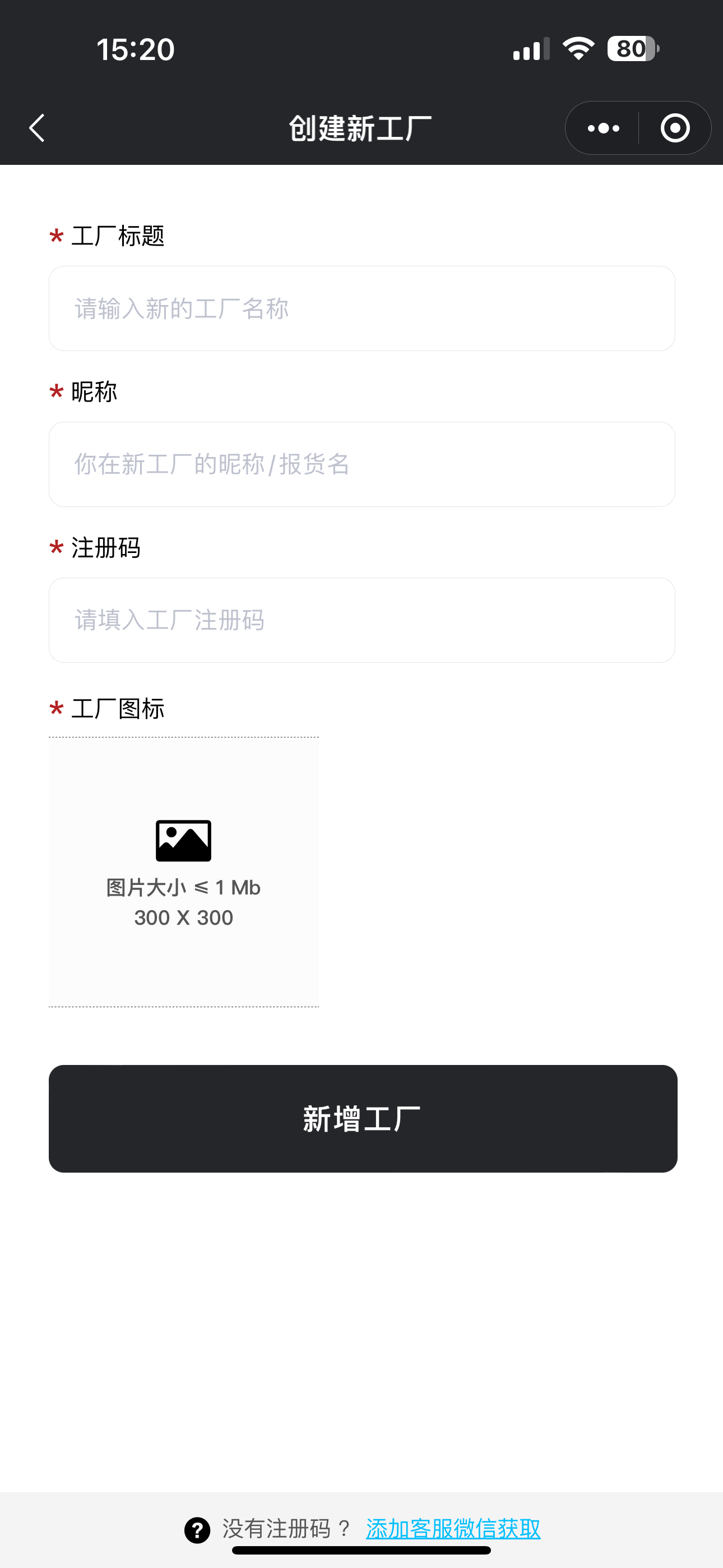 - 4. 注册码:输入注册码以激活新工厂温馨提示:工厂注册码,需联系官方客服获取 “ 点击获取联系方式 ”