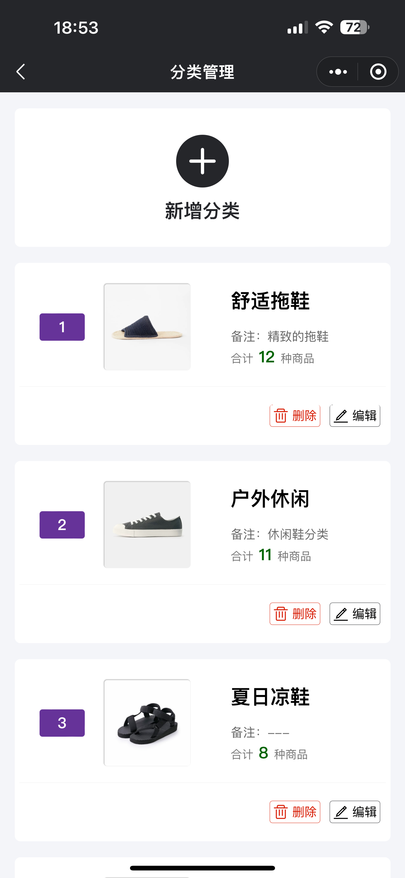 - 删除分类:在执行删除操作前,系统会提示用户确认是否有子商品仍归属于该分类,以避免数据丢失。