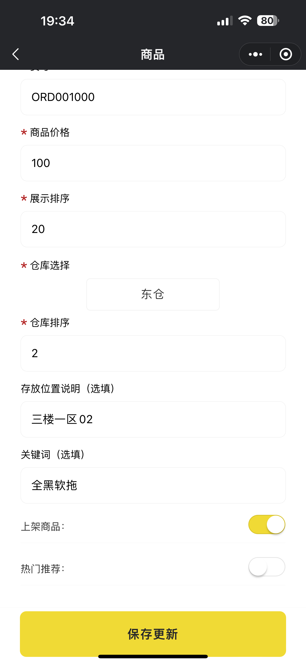 - 编辑商品:对于系统上的商品,系统提供了编辑功能,允许用户更新商品信息,以确保所有展示的数据都是按照工厂的想法来定制。