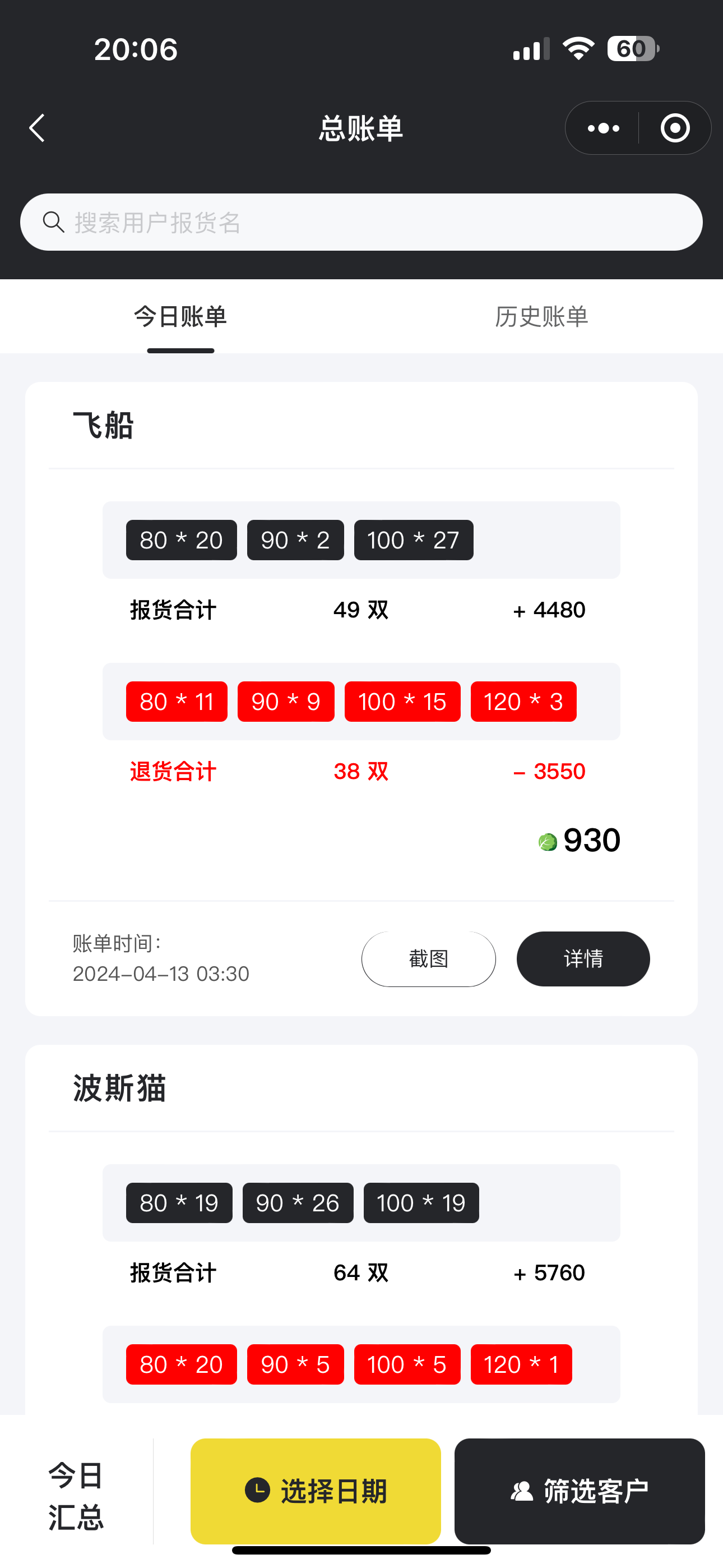 · 通常情况下,我们的账单卡片非常的简洁明了,分享给客户也基本上可以核对清楚今日的基本明细!如果当日确实存在数据出入,那么我们可以点击。 “ 账单详情 ” 💪💪账单详情中会体现出所有的商品详情信息!这时候可以再和客户进行二次详细的校对!