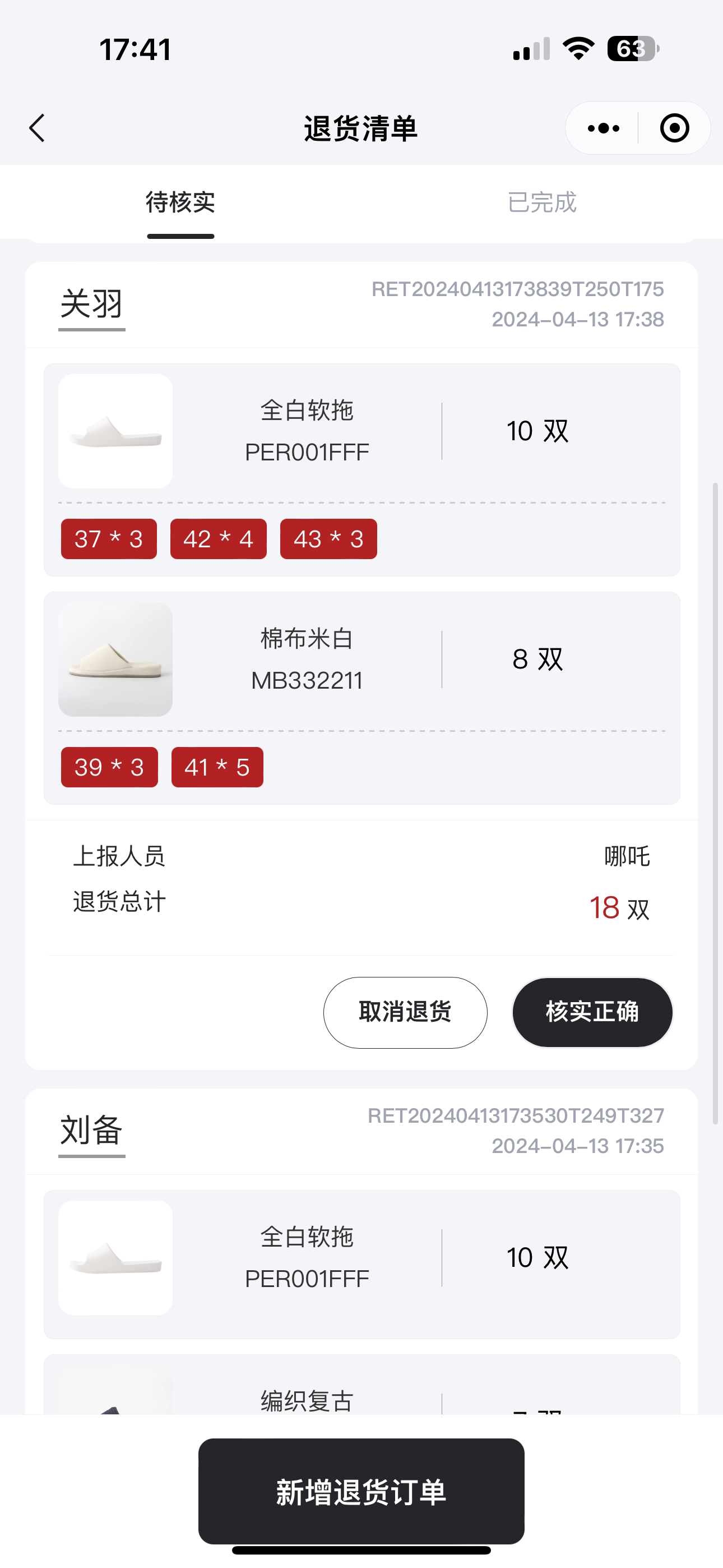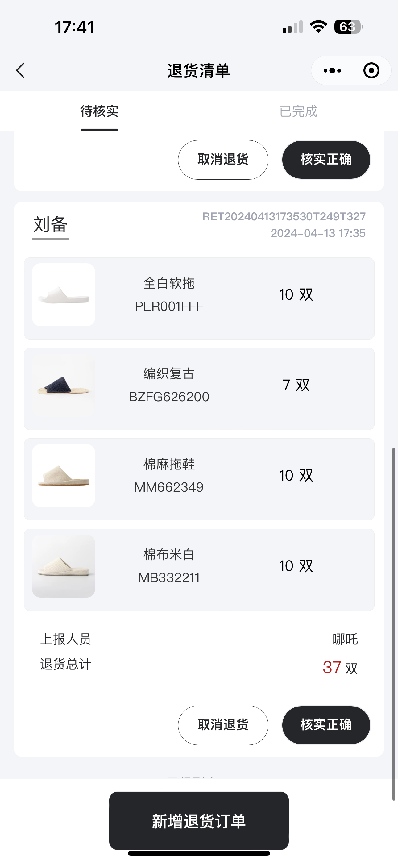 如果在审核过程中发现任何问题或数据出错,高级管理员有权限取消这一笔退货订单。取消后,相关人员需要重新提交一个准确的退货申请。 对于那些审核中 “ 正确 ✅ ” 的退货订单,管理员可以点击 “ 核实正确 ” 按钮进行确认。一旦退货订单被核实为正确无误,系统将根据该笔退货记录和客户的价格自动计算,然后 “ 自动生成或者合并到用户的每日账单 ” 中,确保账单的准确性和及时性。