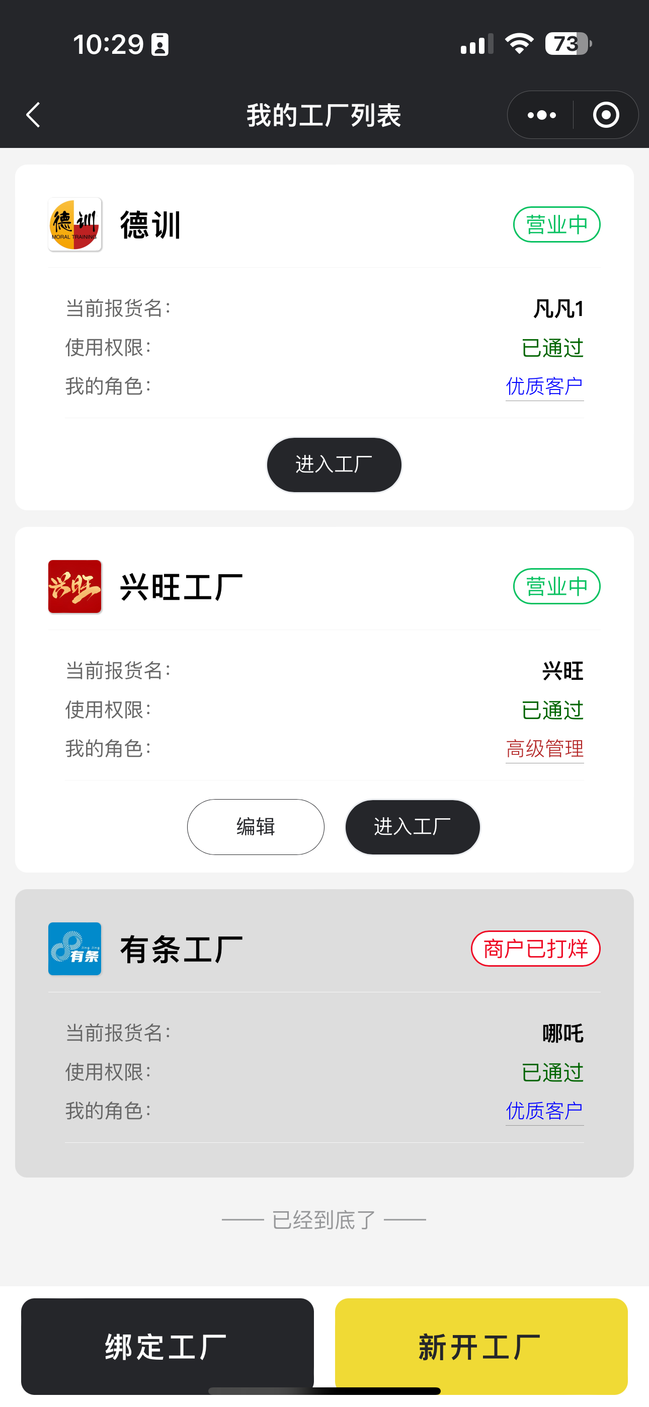 在实际的生产操作中,可能会遇到一些特定的情况,需要用户暂停工厂权限对用户系统的开通,工厂可以启用 “暂停营业” 功能。